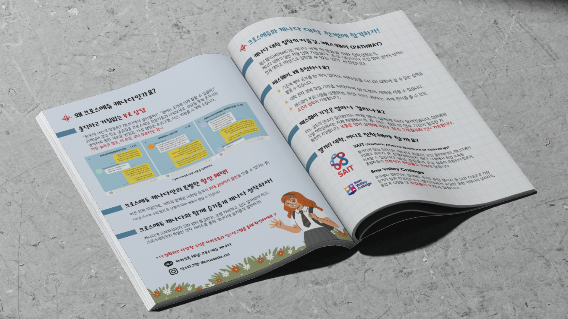 Cross Education is a Calgary-based agency dedicated to helping Koreans navigate studying abroad in Canada. The brand provides personalized support through free consultations, weekly Instagram postings, and immigration seminars, positioning itself as a reliable and approachable resource for those pursuing education and settlement opportunities in Canada.