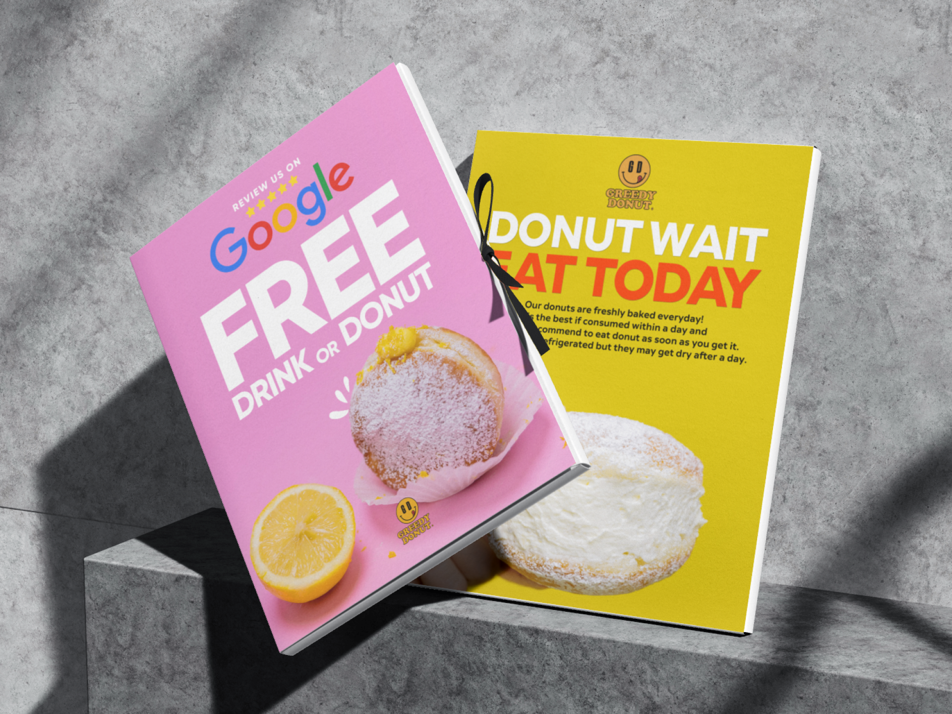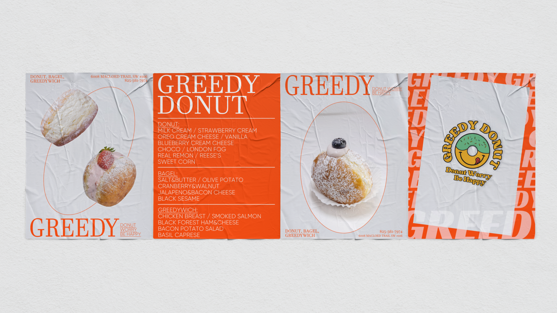 At Greedy Donut, I designed a variety of marketing materials to enhance the brand's presence both online and in-store. My work included creating visually appealing social media content to engage and attract customers, as well as designing menus, posters, and promotional materials for the shop. By maintaining a cohesive brand identity across all touchpoints, I contributed to delivering a delightful and memorable experience for customers.